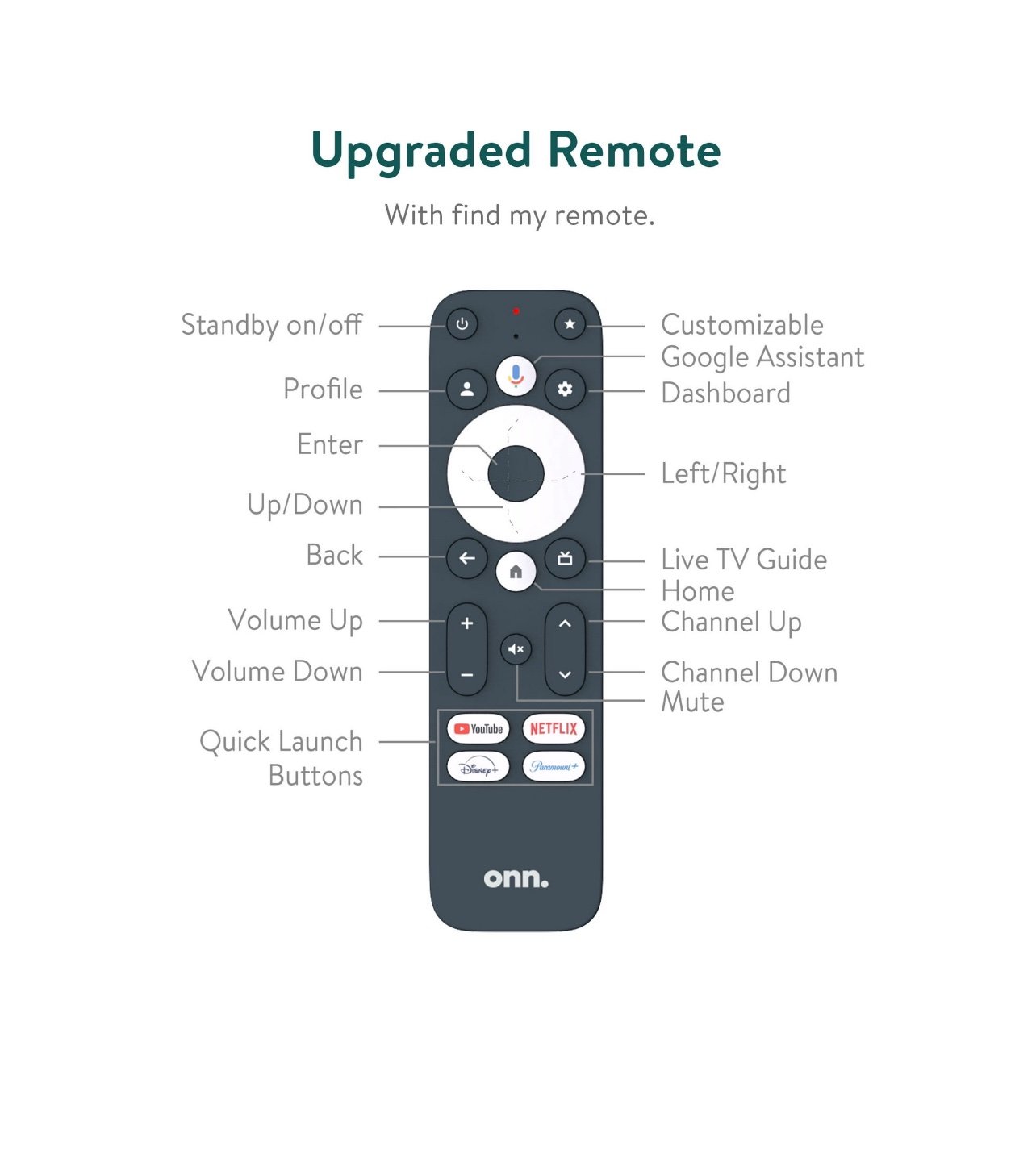 Next level streaming at an affordable price! The Onn. 4K Pro | Google TV offers a cinematic experience with 4K UHD picture quality and enhanced Dolby Vision and Dolby Atmos. Plus, upgraded features like hands-free voice control with Google Assistant, find my remote, and smooth streaming with fast Wi-Fi 6. Enjoy effortless entertainment with Google TV™, bringing together 700,000+ movies, shows, and more across 10,000+ apps, plus 800+ free live TV channels — organized all in one place.